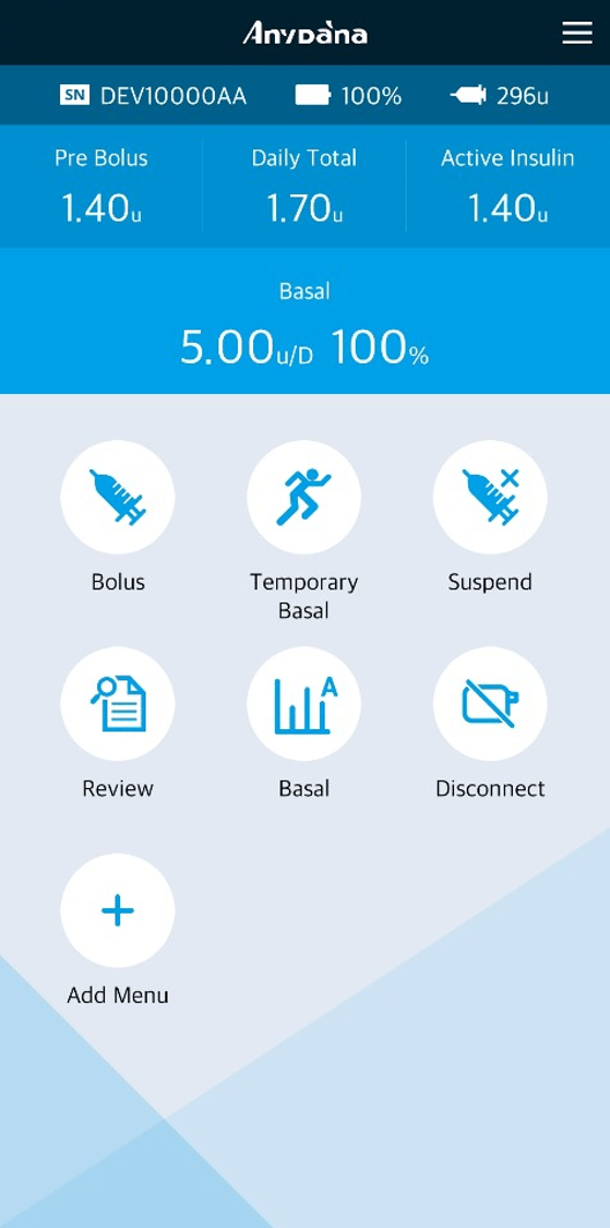 AnyDANA is smart phone applications. It connects with DANA Diabecare Insulin pump having Bluetooth technology and operate and control insulin pump. And it provides convenient to users by allowing view the information of the insulin pump with smartphone’s big screen.